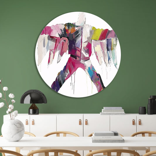 Kleurrijke abstracte figuur met dynamische vormen aluminium muurcirkel