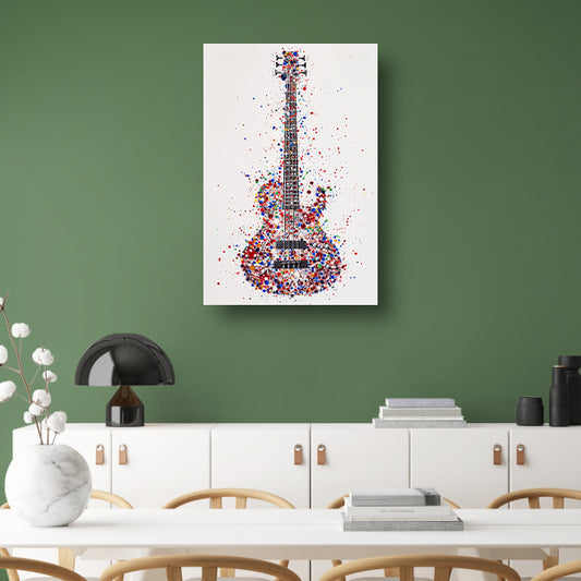 Kleurrijke abstracte gitaar met verfspatten canvas