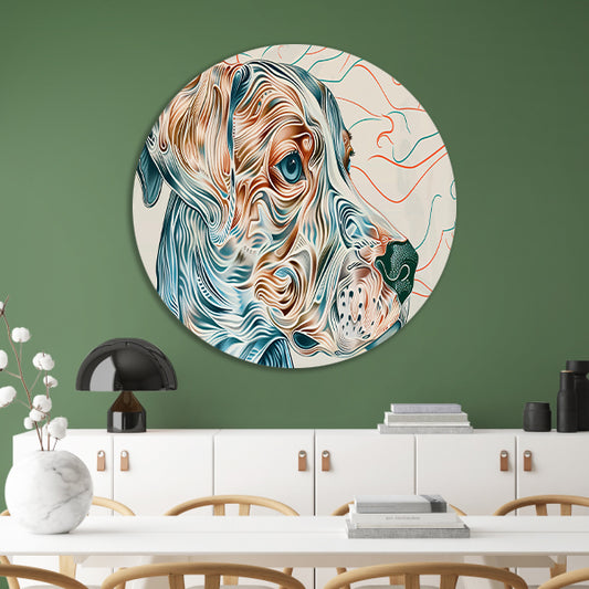 Kleurrijke abstracte hond lijntekening schilderij aluminium muurcirkel