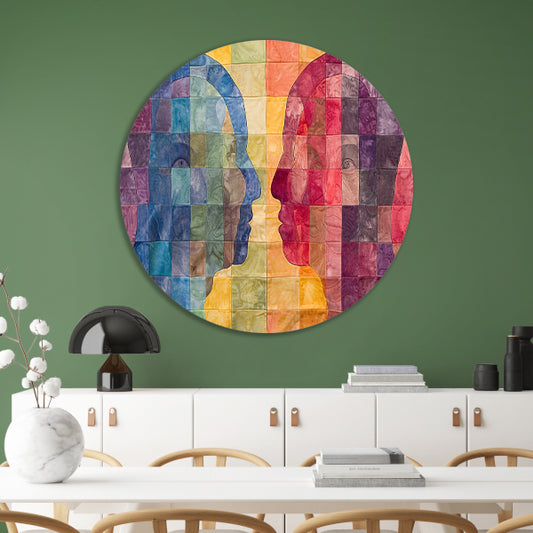 Kleurrijke abstracte hoofden in kubistische stijl aluminium muurcirkel