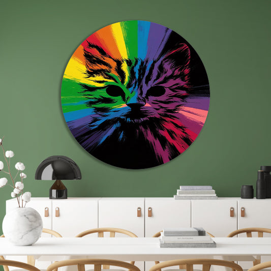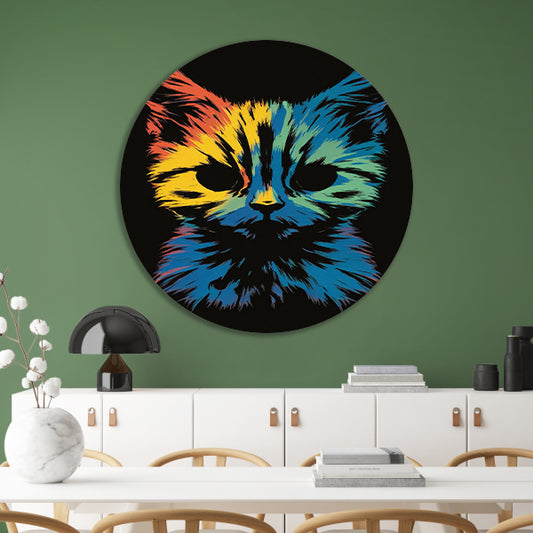 Kleurrijke Abstracte Kat Kunst Print forex muurcirkel