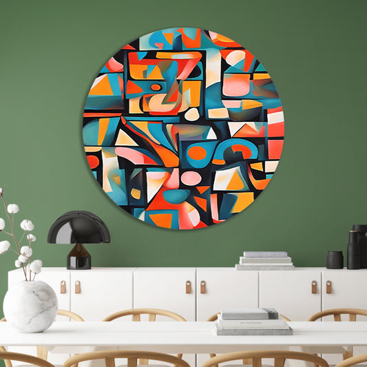 Kleurrijke abstracte kubistische patronen aluminium muurcirkel
