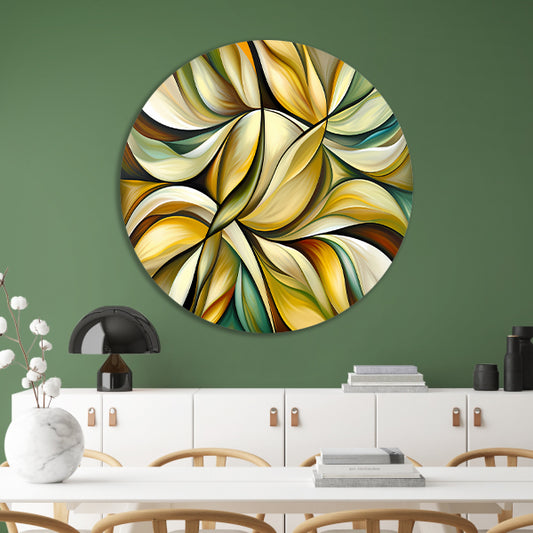 Kleurrijke abstracte kunst met bladeren en vormen forex muurcirkel