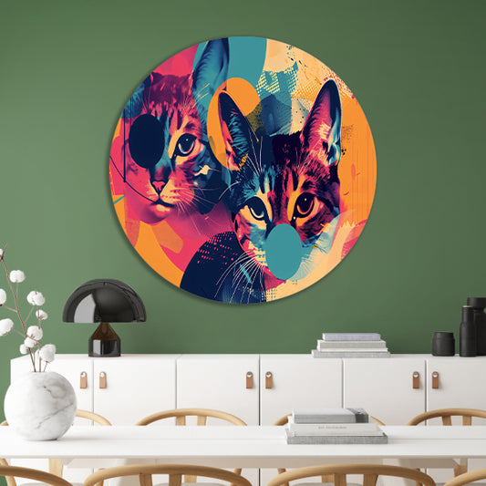 Kleurrijke abstracte katten in geometrische vormen aluminium muurcirkel