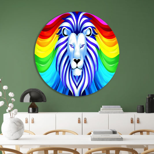 Kleurrijke abstracte leeuw met regenboog manen aluminium muurcirkel