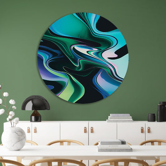 Kleurrijke abstracte kunst met vloeiende vormen aluminium muurcirkel