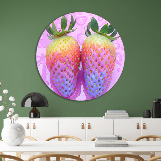 Abstract Aardbeien op Roze Achtergrond aluminium muurcirkel
