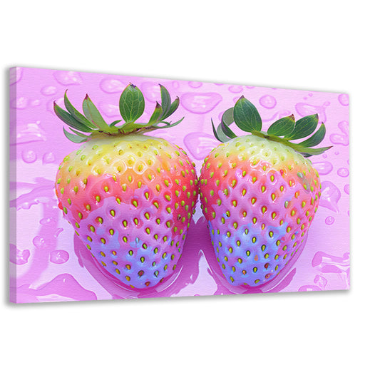 Abstract Aardbeien op Roze Achtergrond canvas met baklijst