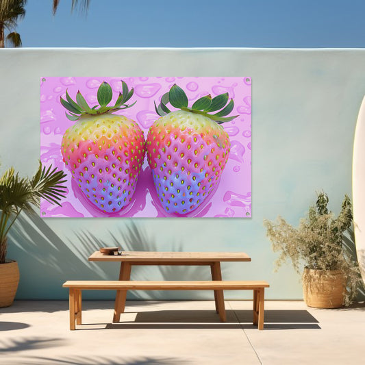 Abstract Aardbeien op Roze Achtergrond tuinposter