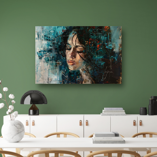 Abstract Portret van een Vrouw in Verf canvas met baklijst