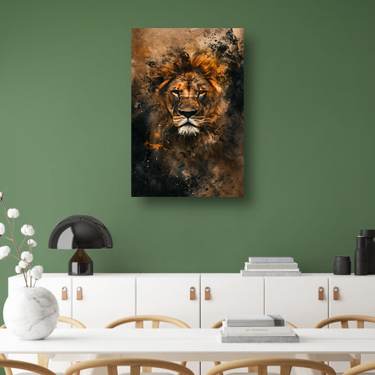 Abstract portret van leeuw in rustieke stijl canvas met baklijst