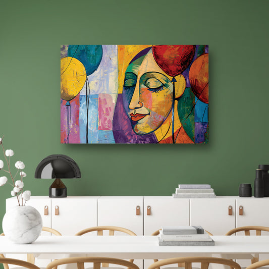 Abstract portret van vrouw met ballonnen forex muurcirkel