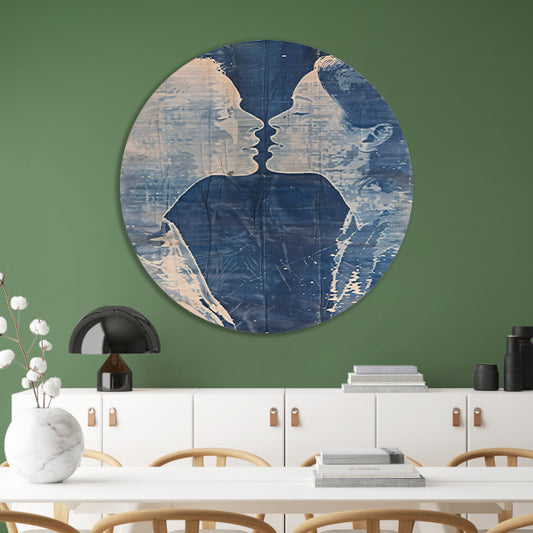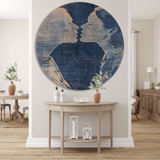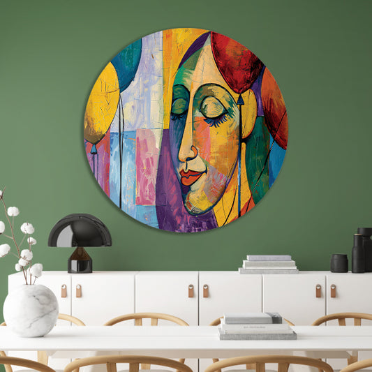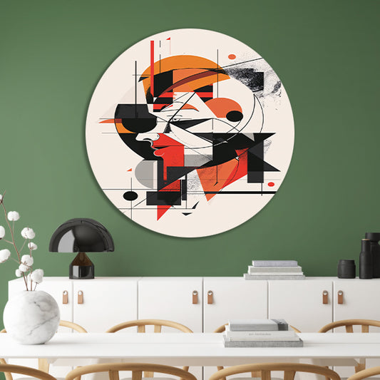 Abstract portret van vrouw in geometrische vormen aluminium muurcirkel