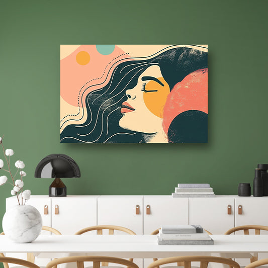Abstract portret van vrouw in geometrische vormen canvas met baklijst