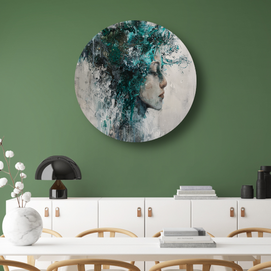 Abstract Profiel van een Vrouw in Turquoise aluminium muurcirkel