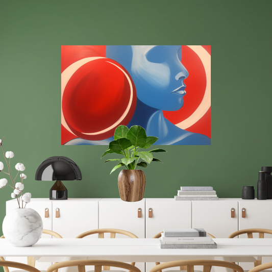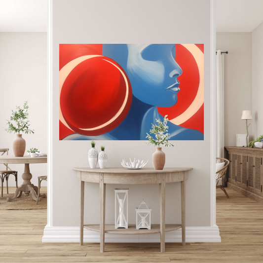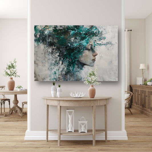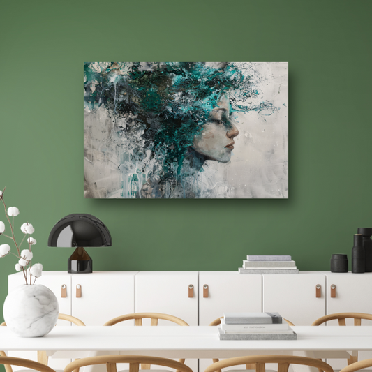 Abstract Profiel van een Vrouw in Turquoise canvas met baklijst
