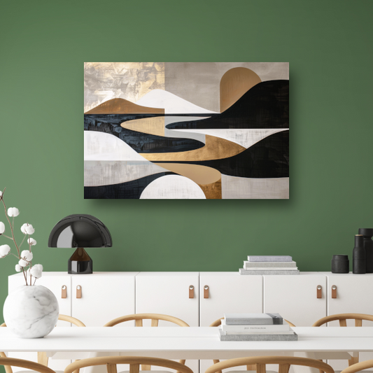 Abstract Rivierlandschap in Goud en Zwart canvas