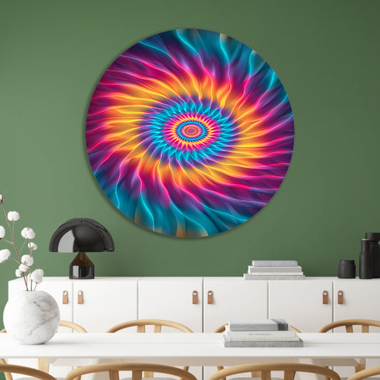 Abstract Psychedelische Bloem in Wervelende Kleuren aluminium muurcirkel