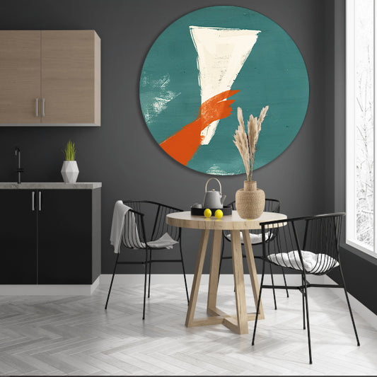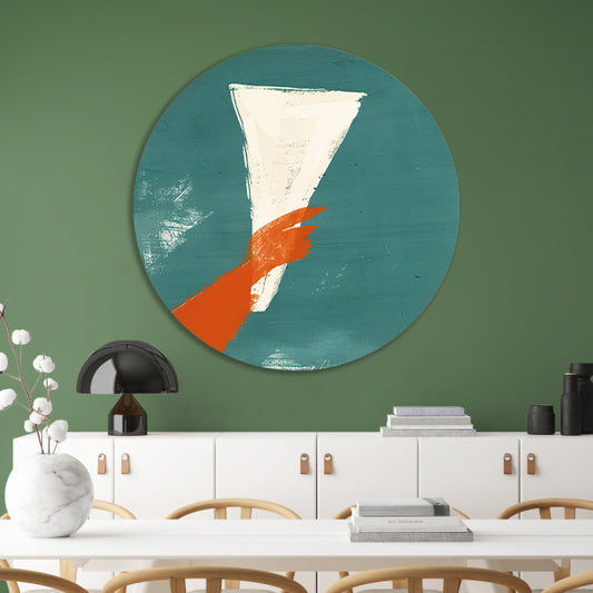 Abstract Rode Hand met Papier aluminium muurcirkel