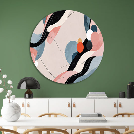 Abstract schilderij in Japandi stijl aluminium muurcirkel