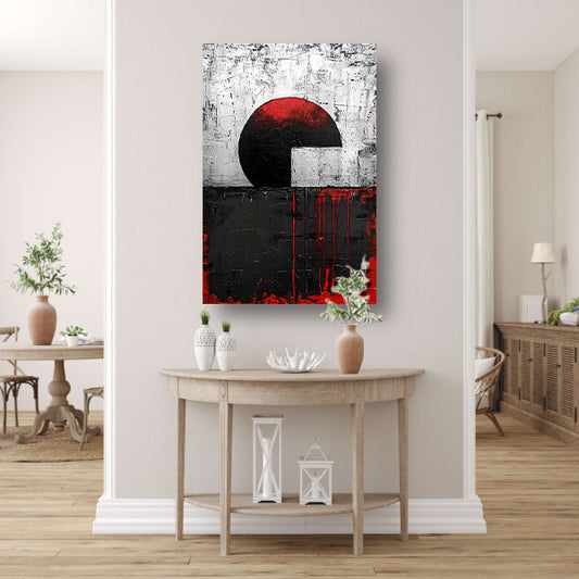 Abstract schilderij met cirkel en verfstrepen acrylglas