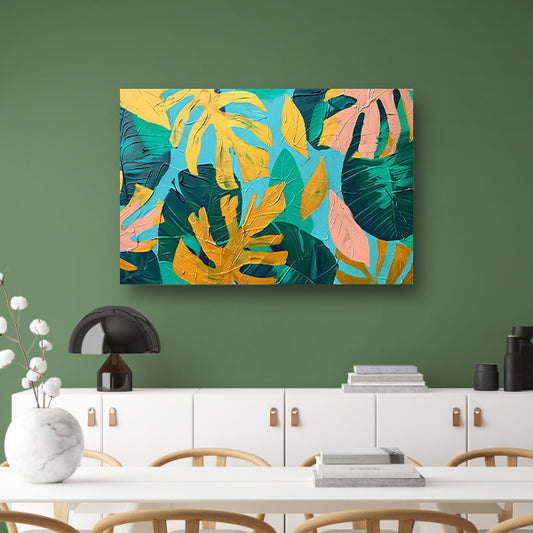 Abstract schilderij met kleurrijke tropische bladeren canvas