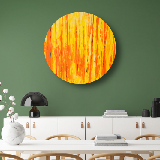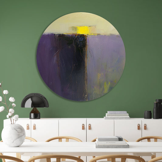 Abstract schilderij met paarse en gele kleuren forex muurcirkel