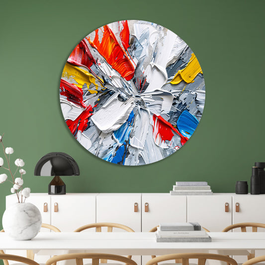 Abstract schilderij met levendige kleuren en dynamiek forex muurcirkel