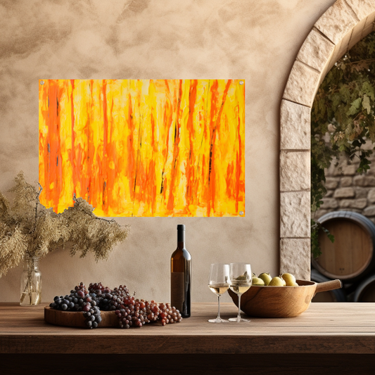 Abstract schilderij met paarse en gele kleuren tuinposter