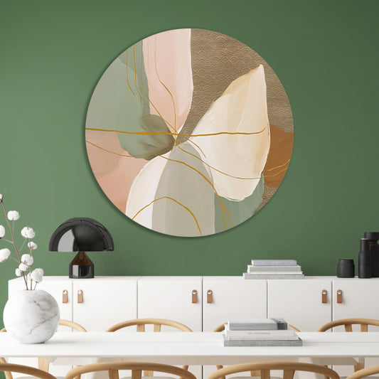 Abstract schilderij met lijnen in Japandi-stijl forex muurcirkel