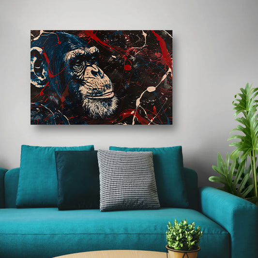 Abstract schilderij van aap met verfspetters canvas