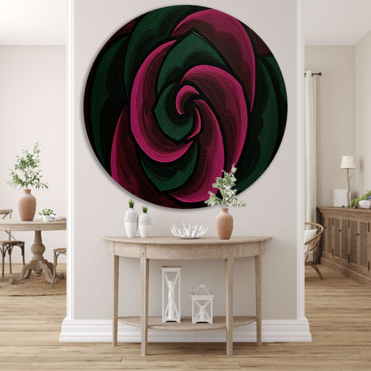 Abstract schilderij van bloem in groene en roze tinten forex muurcirkel