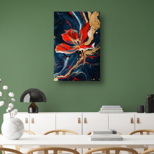 Abstract schilderij van bloem met dynamische kleuren canvas