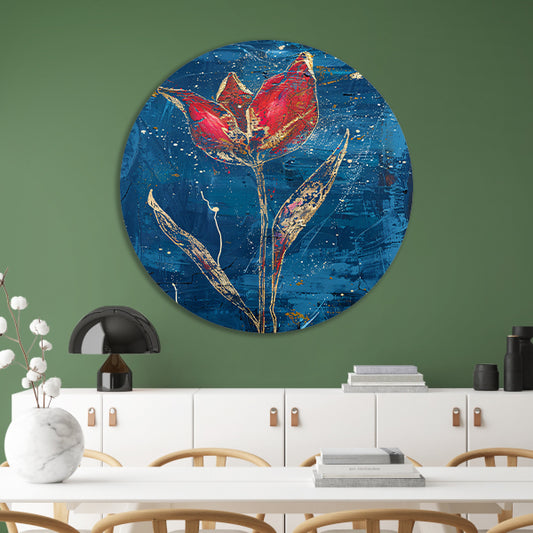 Abstract schilderij van dynamische tulp aluminium muurcirkel