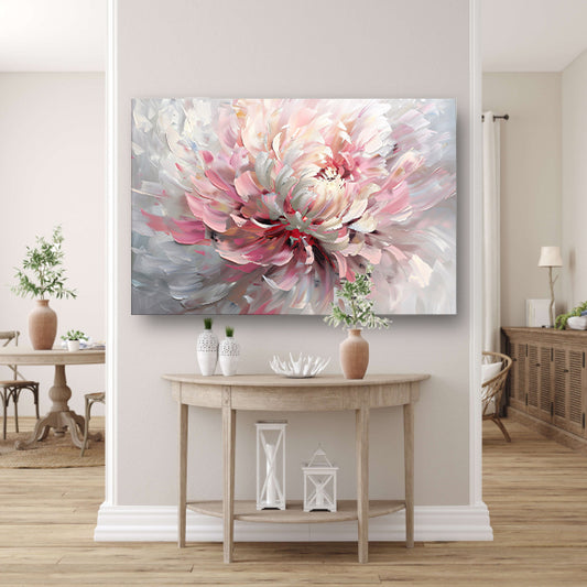 Abstract schilderij van een chrysant bloem canvas met baklijst