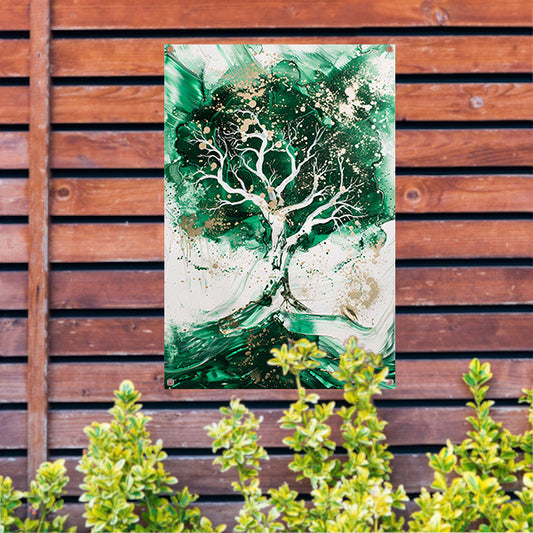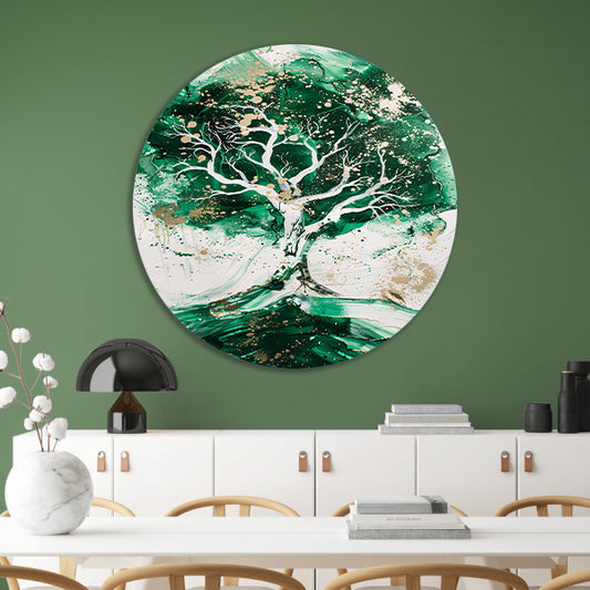 Abstract schilderij van dynamische boom aluminium muurcirkel