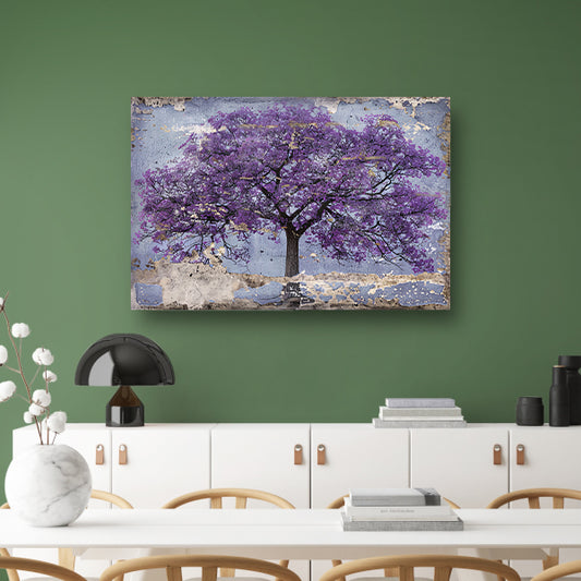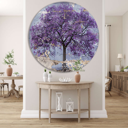 Abstract schilderij van een paarse boom aluminium muurcirkel