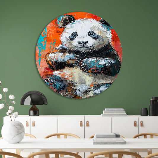 Abstract schilderij van een panda in felle kleuren forex muurcirkel