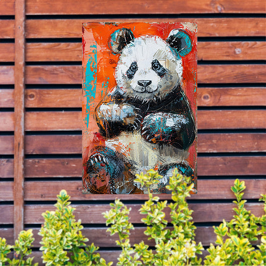 Abstract schilderij van een panda in felle kleuren tuinposter