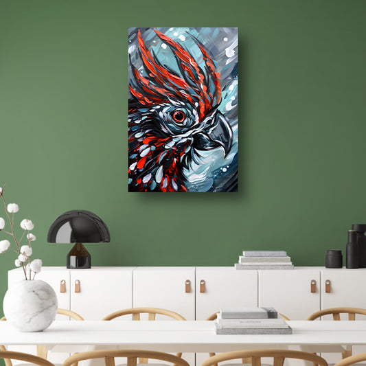 Abstract schilderij van kleurrijke papegaai canvas met baklijst