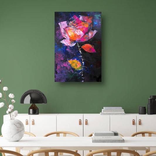 Abstract schilderij van kleurrijke bloemen en bomen canvas
