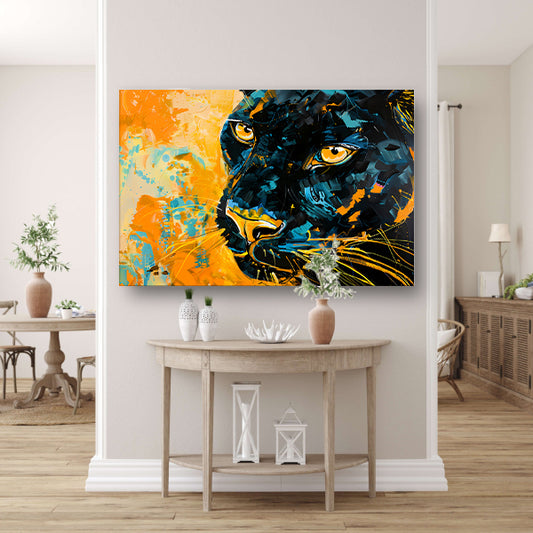 Abstract schilderij van kleurrijke zwarte panter canvas