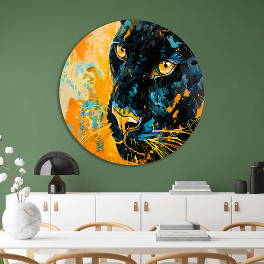 Abstract schilderij van kleurrijke zwarte panter forex muurcirkel