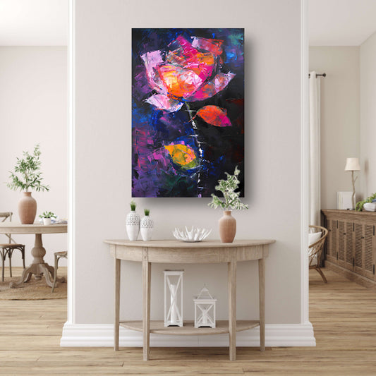 Abstract schilderij van kleurrijke roos canvas met baklijst