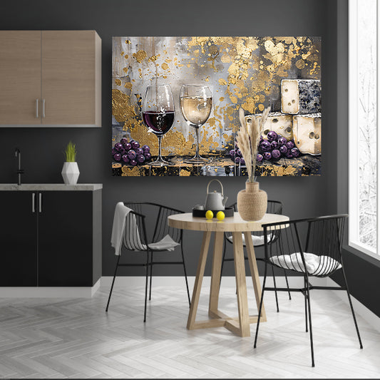 Abstract schilderij van wijn en kaas canvas met baklijst