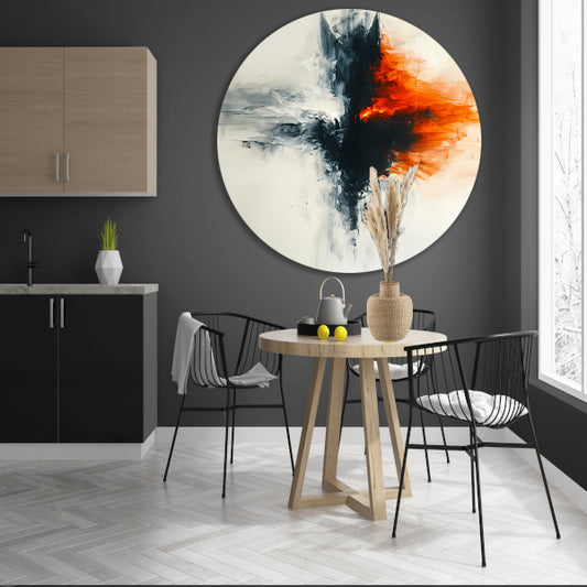 Abstract schilderij van wolf met vurige kleuren forex muurcirkel
