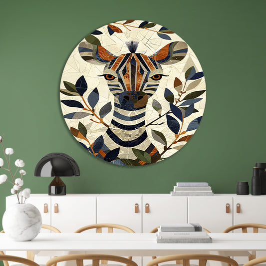 Abstract schilderij van zebra met bladeren forex muurcirkel