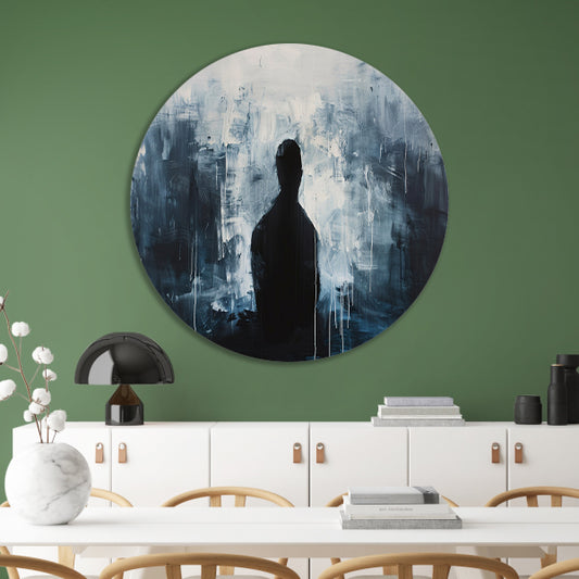 Abstract silhouet in monochrome sfeer aluminium muurcirkel