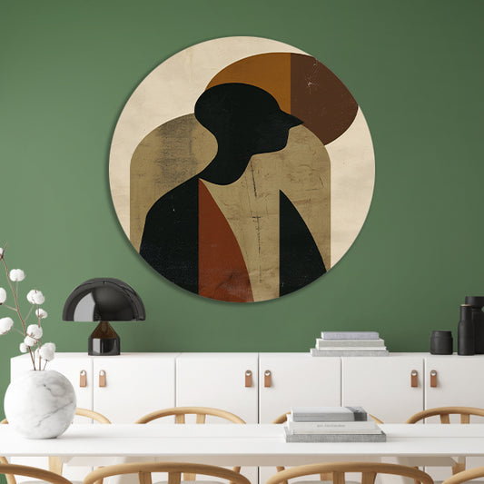 Abstract silhouet met geometrische vormen en neutrale kleuren aluminium muurcirkel