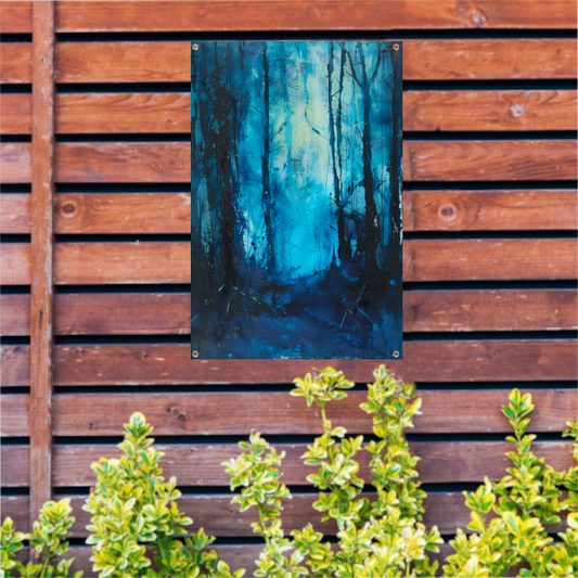Abstract blauw bos in dynamische penseelstreken acrylglas
